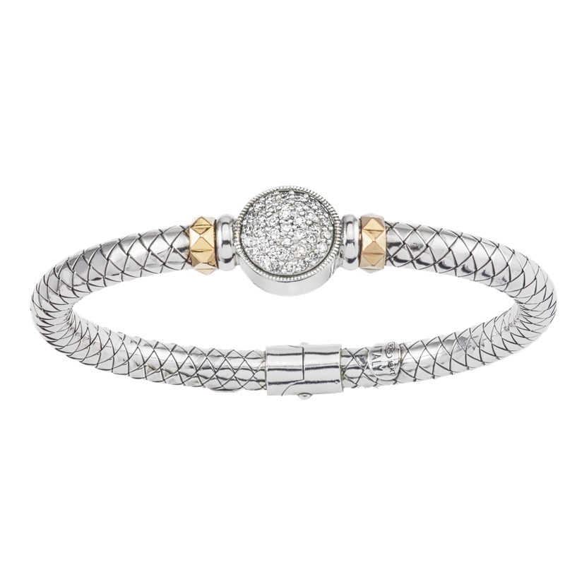 Alisa Diamond Circle Yellow Gold Rondelles Sterling Traversa Spring Bangle Bracelet