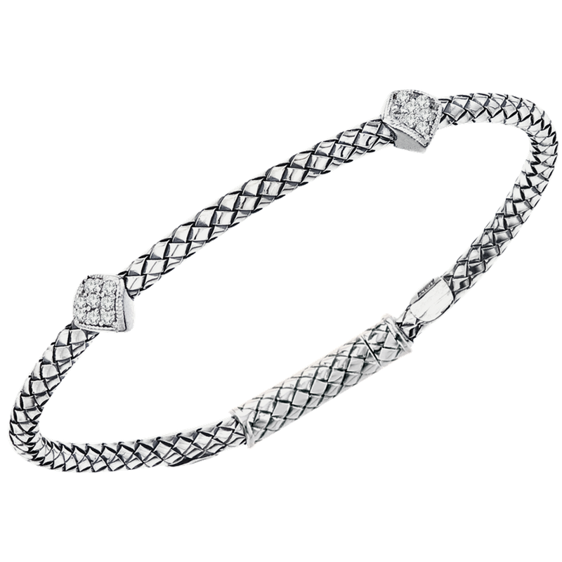925 SS 3 MM Traversa locking bangle bracelet, diamond shape, .28 ct tw diamonds, Rhodium Finish