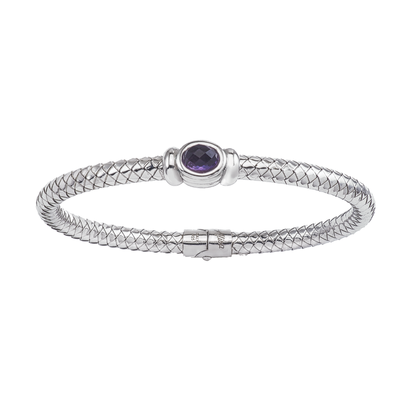 Alisa Faceted Amethyst Sterling Traversa Spring Bangle Bracelet