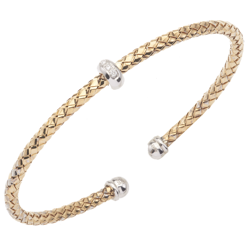 18K & 925 SS 3.25 MM Traversa cuff bangle bracelet, 1 rondelle, .03ct tw diamonds, Rhodium Finish