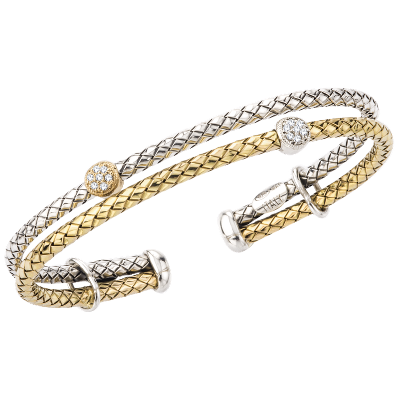 Alisa Two Strand Yellow Gold & Sterling Traversa, Two Round Shape Diamond Station Cuff Bracelet
