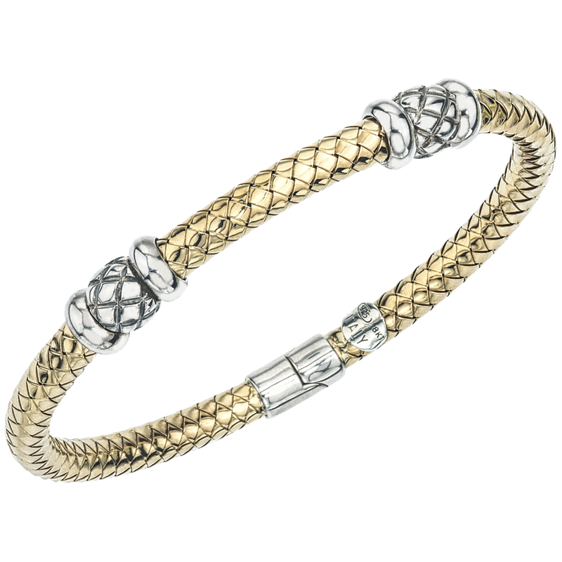 18K & 925 SS 5 MM Traversa spring cuff bangle bracelet, 2 X 925 SS Traversa stations, Rhodium Finish