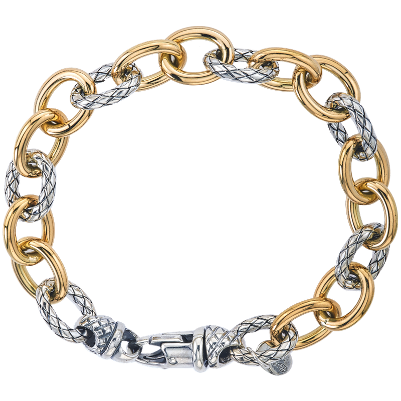 18K & 925 SS Traversa & shiny link bracelet, Rhodium Finish