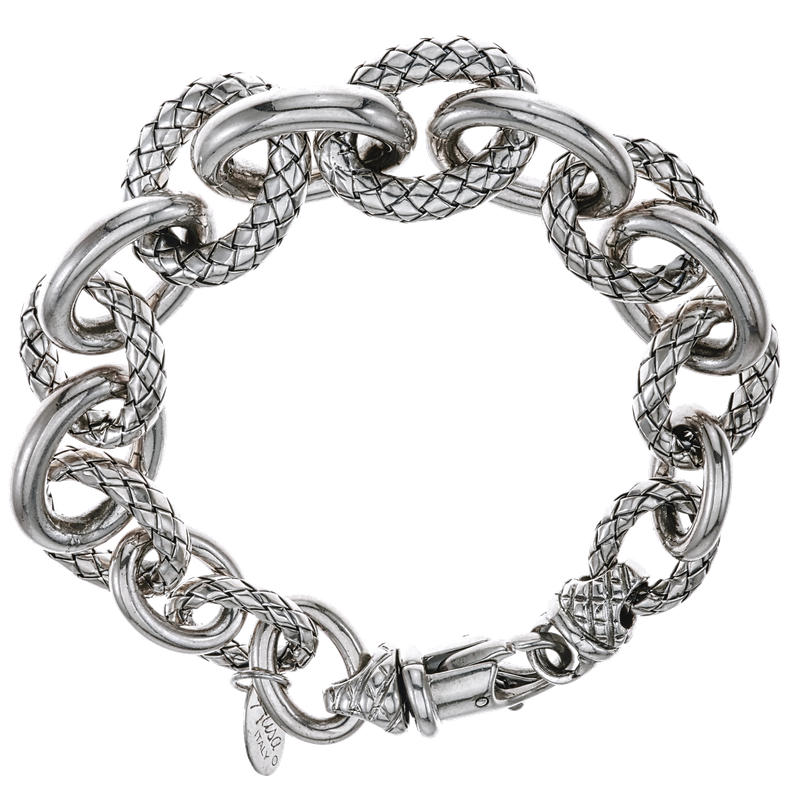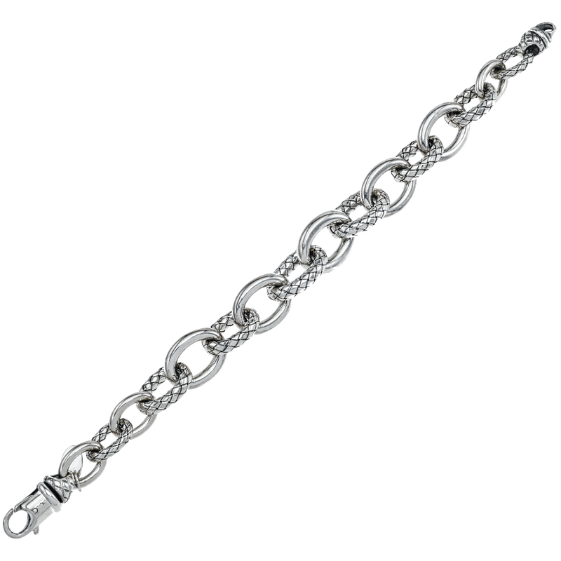 Alisa Alternating Graduated Oval Shiny & Traversa Sterling Link Bracelet
