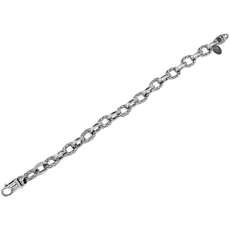 Alisa Alternating Oval Shiny & Traversa Sterling Link Bracelet