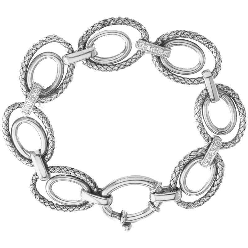 925 SS bracelet, Traversa oval links, 0.36 ct tw diamonds, Rhodium Finish