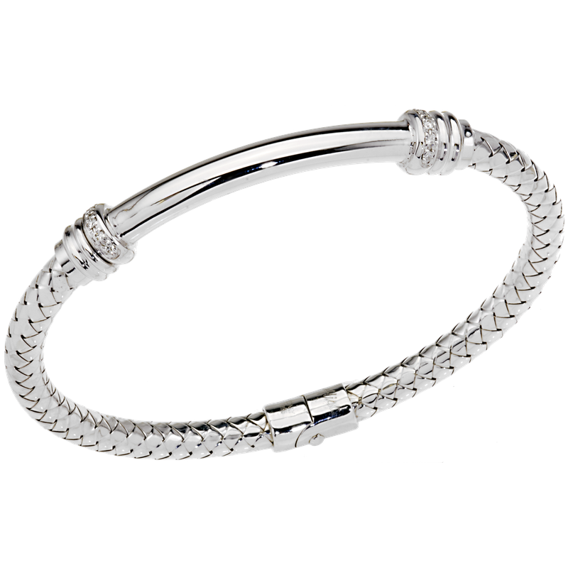 925 SS 4.75 MM Traversa spring cuff bangle bracelet, shiny bar, .10ct tw diamonds, Rhodium Finish