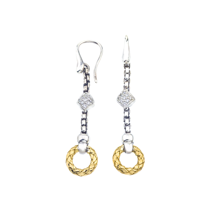 Alisa Sterling Single Diamond Shape Diamond Station Round Yellow Gold Traversa Circle Drop Earrings