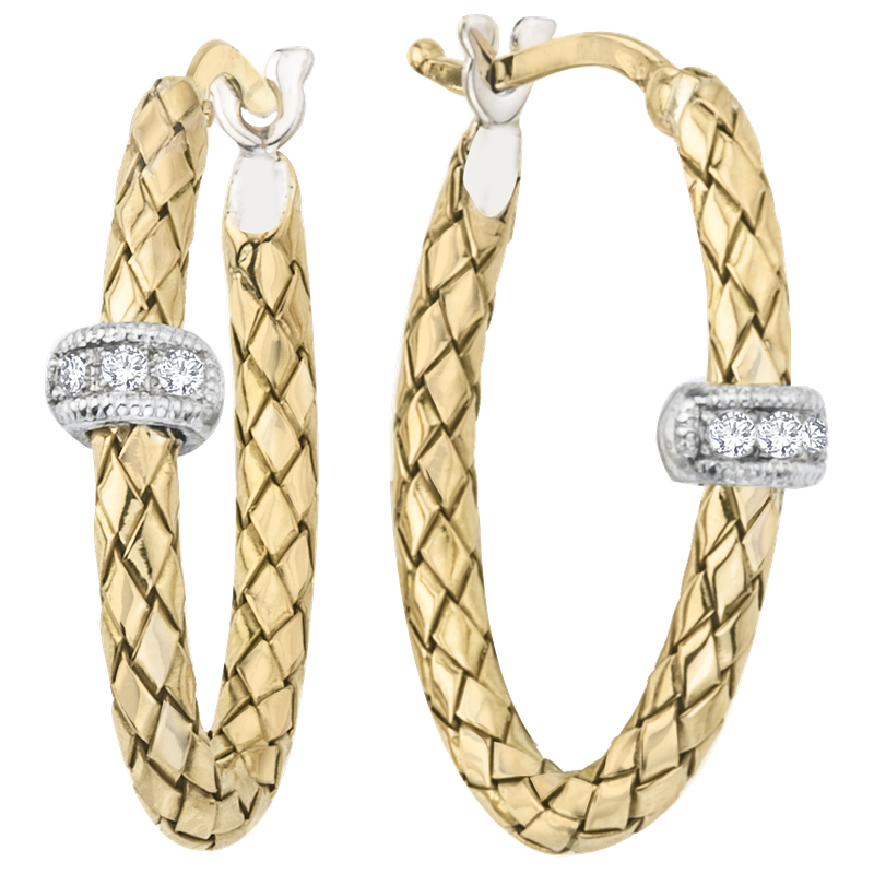 18K & 925 SS Traversa oval hoop earrings, SS rondelle, 0.06 ct tw diamonds, 18K bar closing, Rhodium Finish
