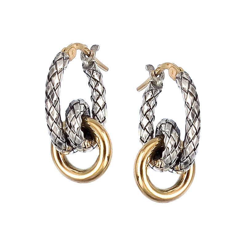 Alisa Sterling Traversa Loopy Earrings with Shiny Yellow Gold Circle Dangle