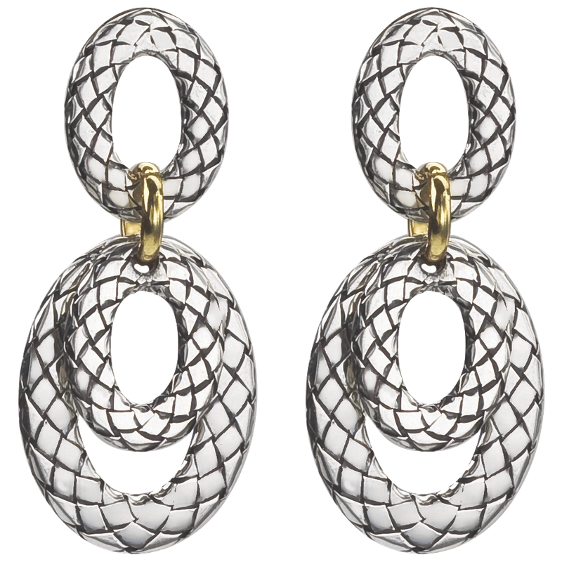 Alisa Triple Oval Sterling Traversa Doorknocker Earrings with Yellow Gold Attachment