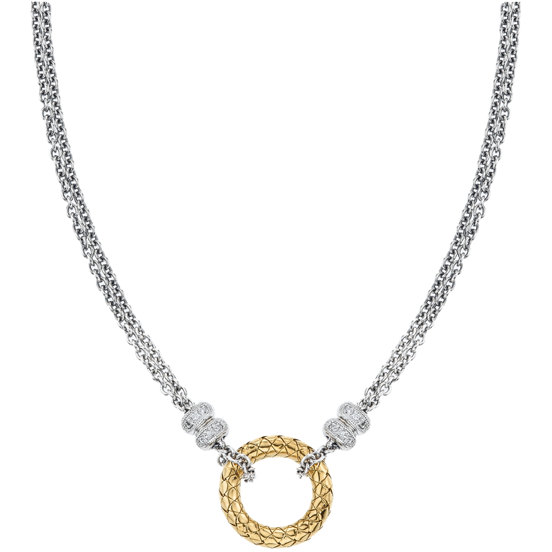 18K & 925 SS small circle double chain necklace, 0.12 ct tw diamonds, Rhodium Finish