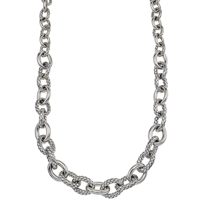 Alisa Sterling Traversa & Shiny Oval Links Necklace