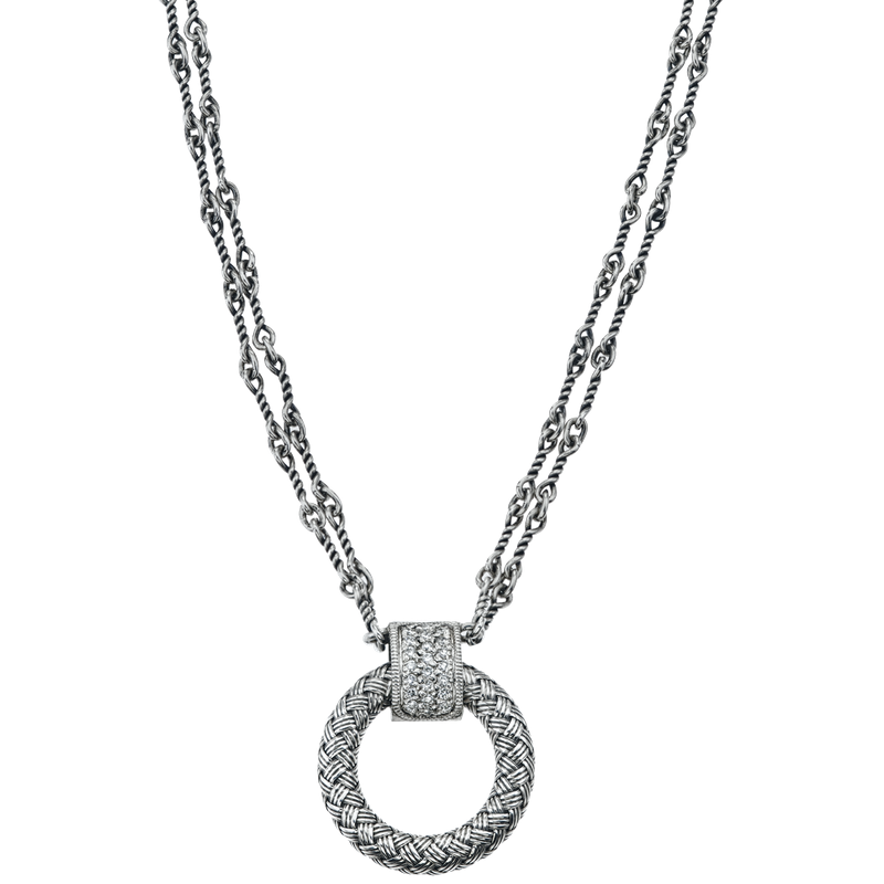 Alisa Open Sterling Linea Circle with Pave' Diamond Top Necklace