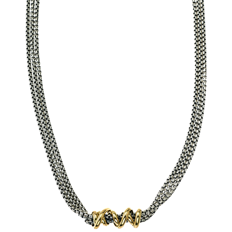 Alisa Multi Strand Sterling Box Necklace with Shiny Yellow Gold Wrap