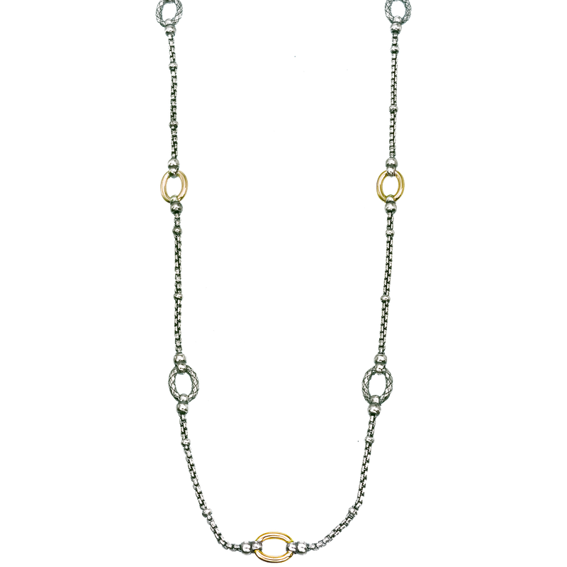 Alisa Long Sterling Box Chain with 4 Traversa Oval Links & 3 Shiny Yellow Gold Oval Links Necklace