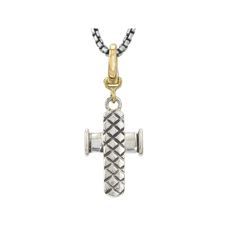 Alisa Small Sterling Traversa Cross Pendant with Yellow Gold Enhancer Bail
