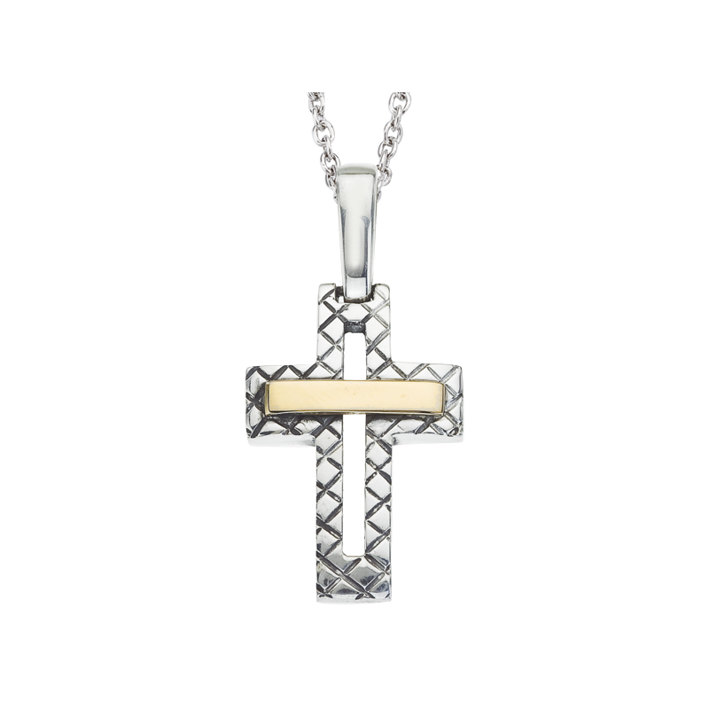 Alisa Sterling Traversa Open Cross with Yellow Gold Bar