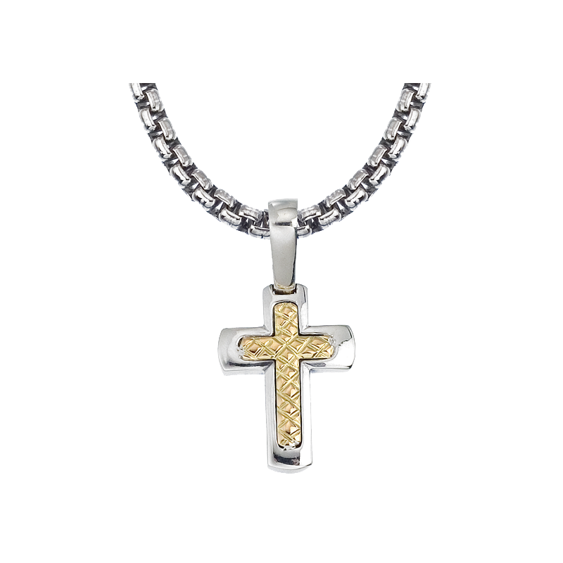 18K & 925 SS Traversa & shiny cross pendant, Rhodium Finish. Please note: Pendants now include a chain, may be different than pictured.