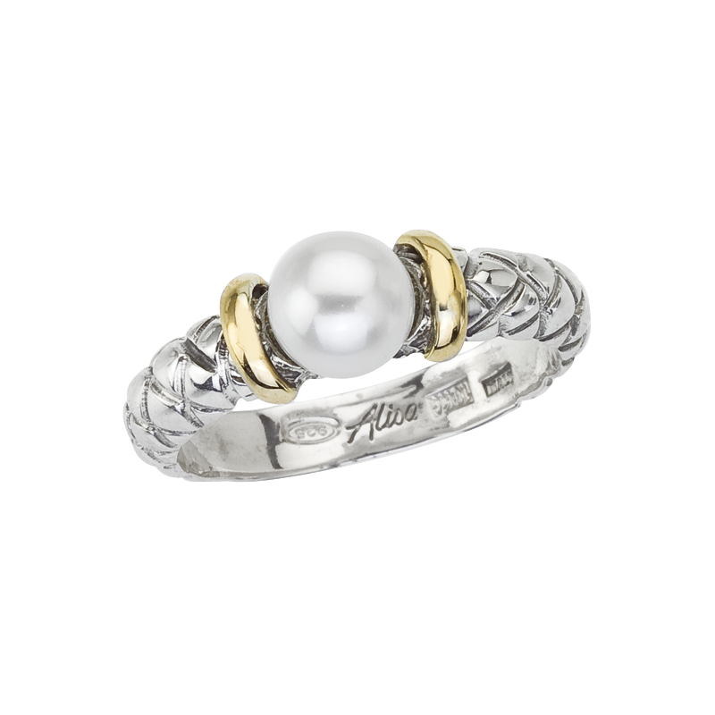 18K & 925 SS Traversa & shiny ring, Pearl, Rhodium Finish