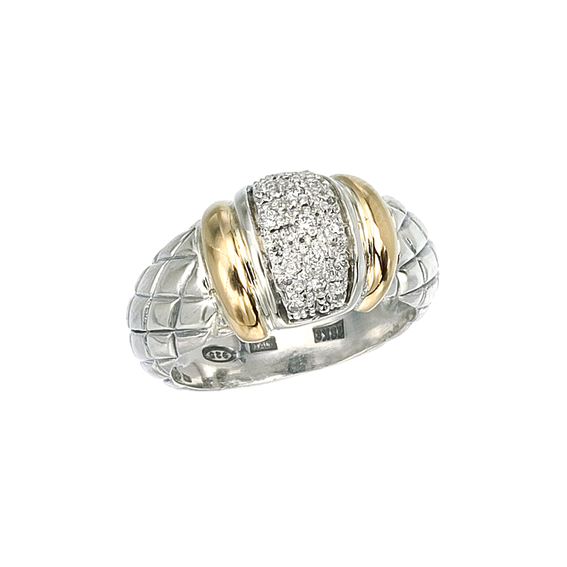 Alisa Pave' Center Sterling Traversa Dome Ring with Yellow Gold Rondelles