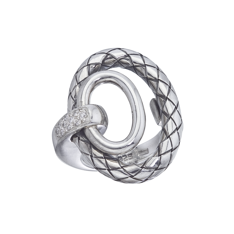 925 SS Traversa & shiny oval in oval ring, 0.10 ct tw diamonds, Rhodium Finish