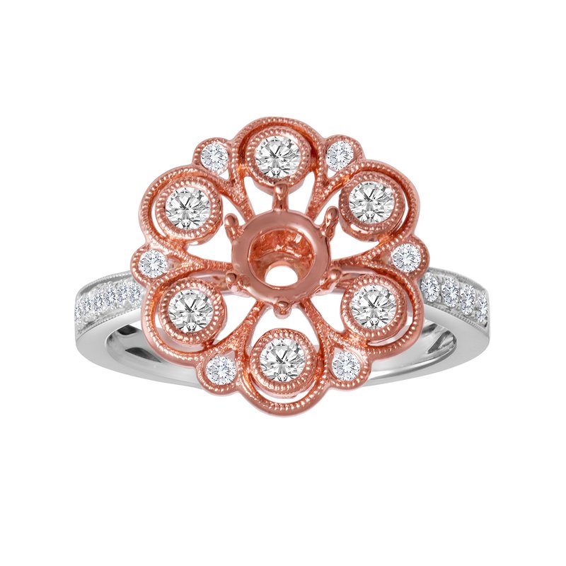 18K 2Tr Vintage Flwr Ring 24Wd .49 (Rd.50)