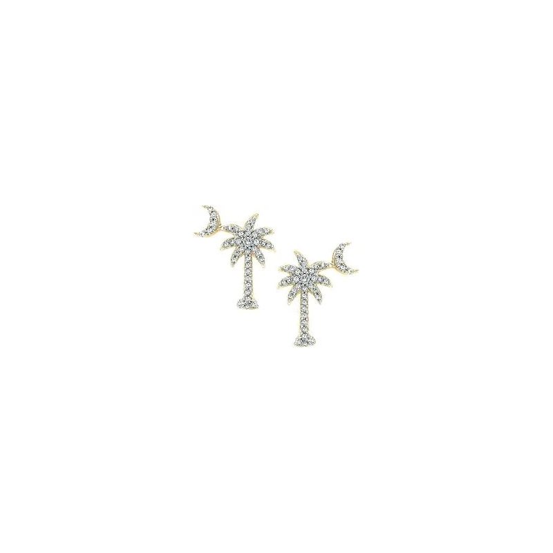 These14K gold diamond palmetto with gold moon stud earrings are a great staple to have. Wear them with the matching diamond palmetto necklace or let them shine on their own! Available in White Gold.