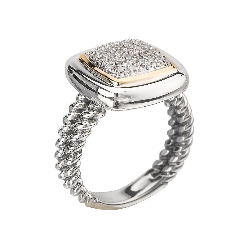 14Kt Yellow Gold and Sterling Silver Square Diamond Fashion Ring. (D 1/7 carat total weight)