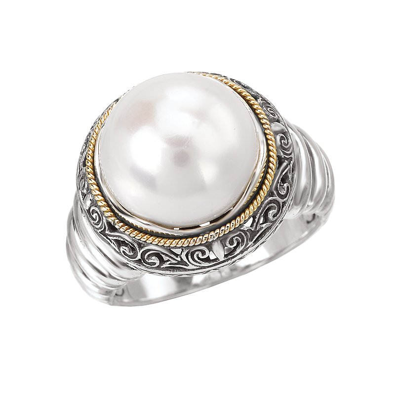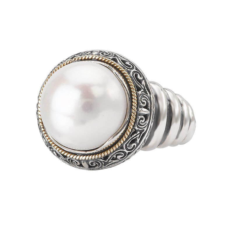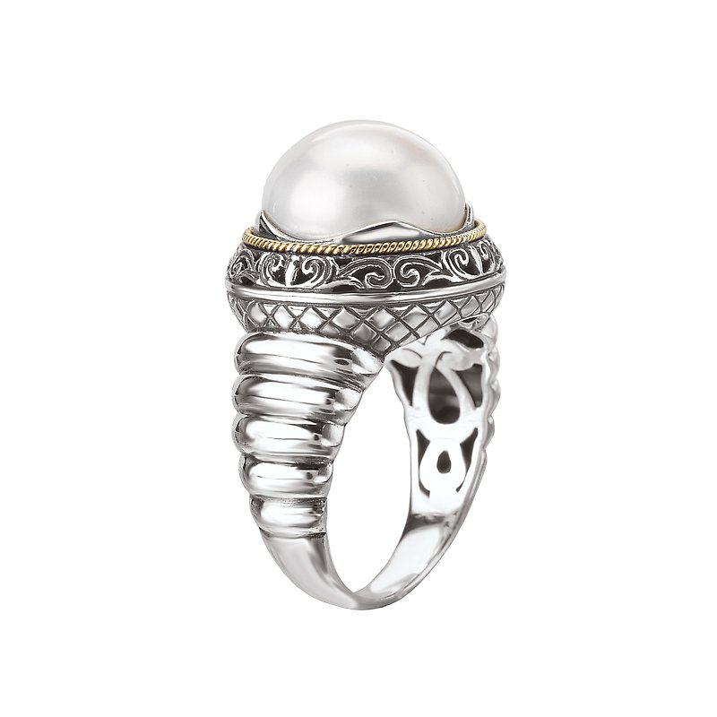 White Mabe' Pearl Ring in Sterling Silver and 18kt Yellow Gold Accents.