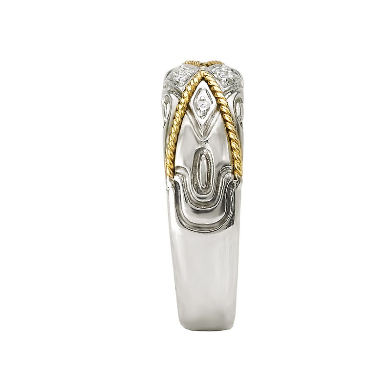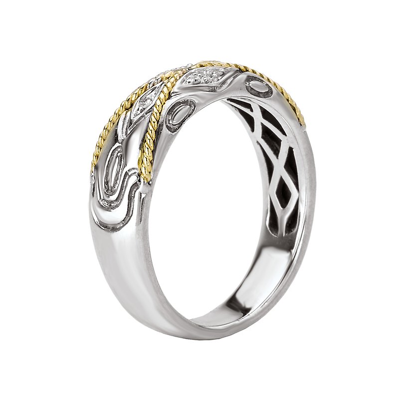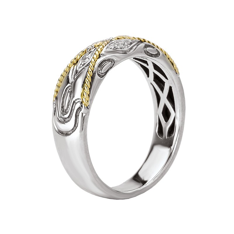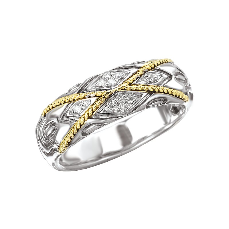 Sterling Silver Fashion Ring with Diamonds and an X Shape Rope Design in 18kt Yellow Gold . (D.055 carat total weight) Sizes Available 6, 7, 8 Only