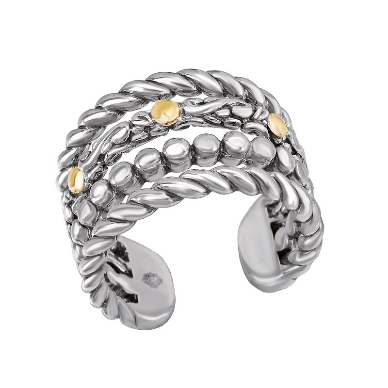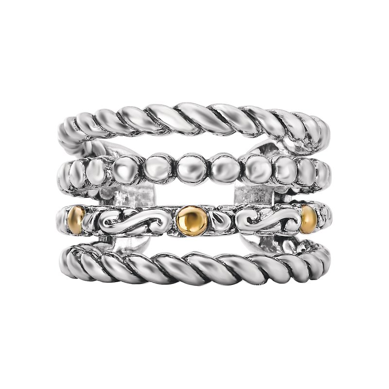 Artistic ring crafted in high polished silver accented in 18k yellow gold.