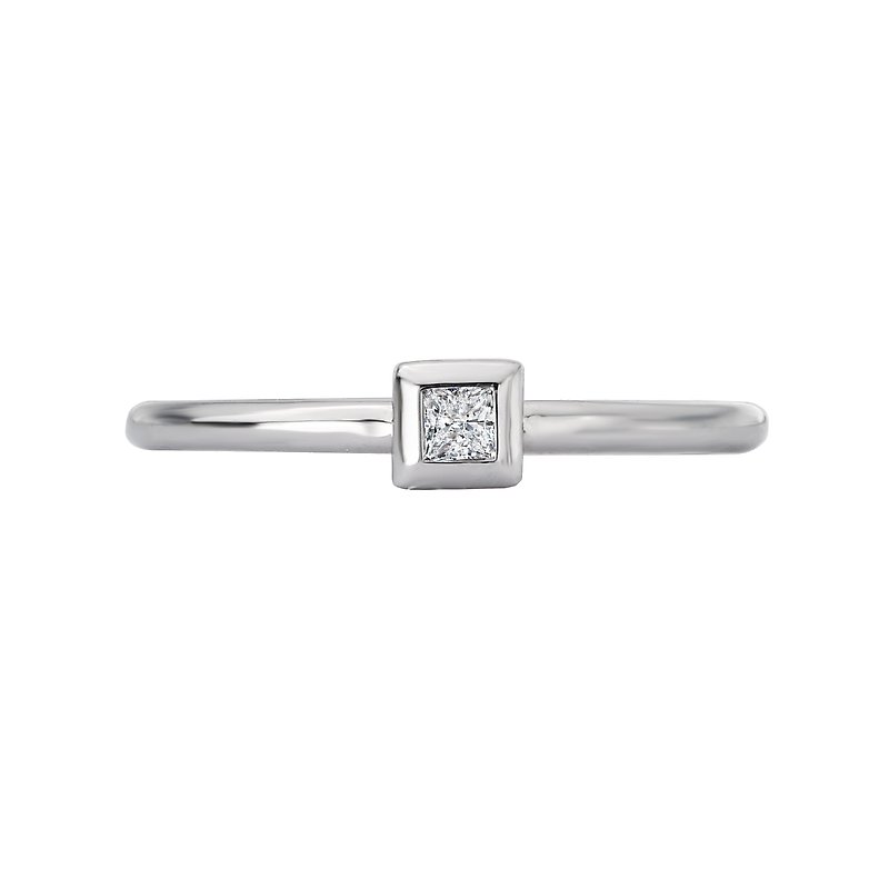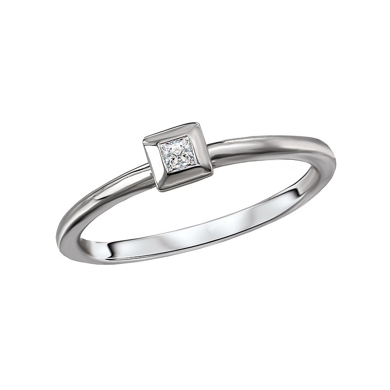 A princess cut diamond center is showcased on this modern ring crafted in high polished silver. (D .05 carat total weight)