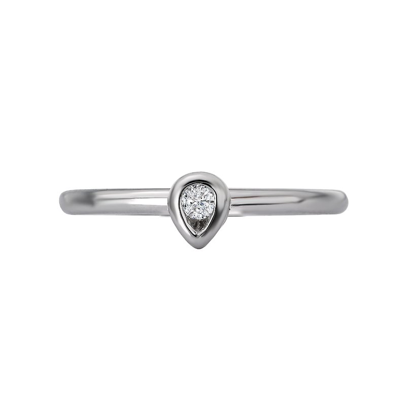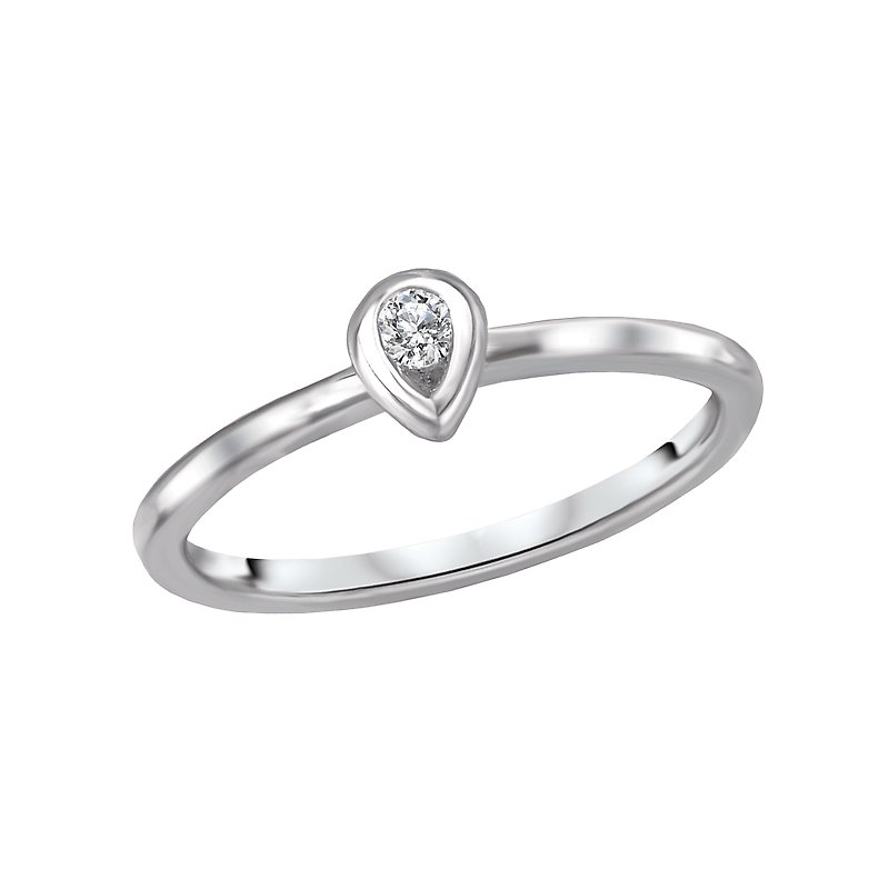 Ladies fashion ring features a round .05ct diamond center set in high polished silver.