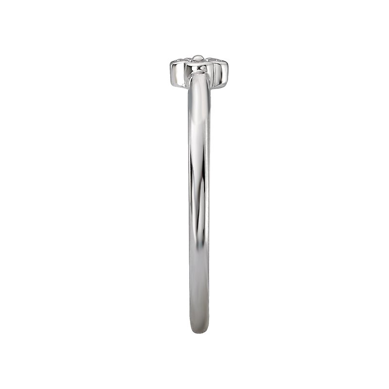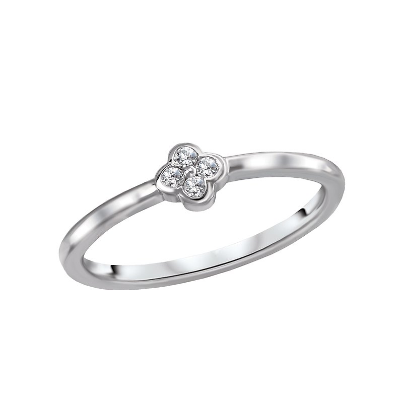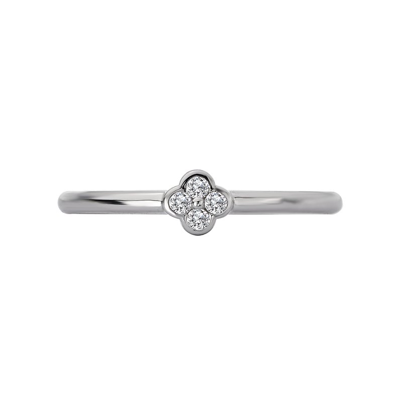 This cute dainty ring features a four leaf clover created with round diamonds set in high polished silver. (D .06 carat total weight)