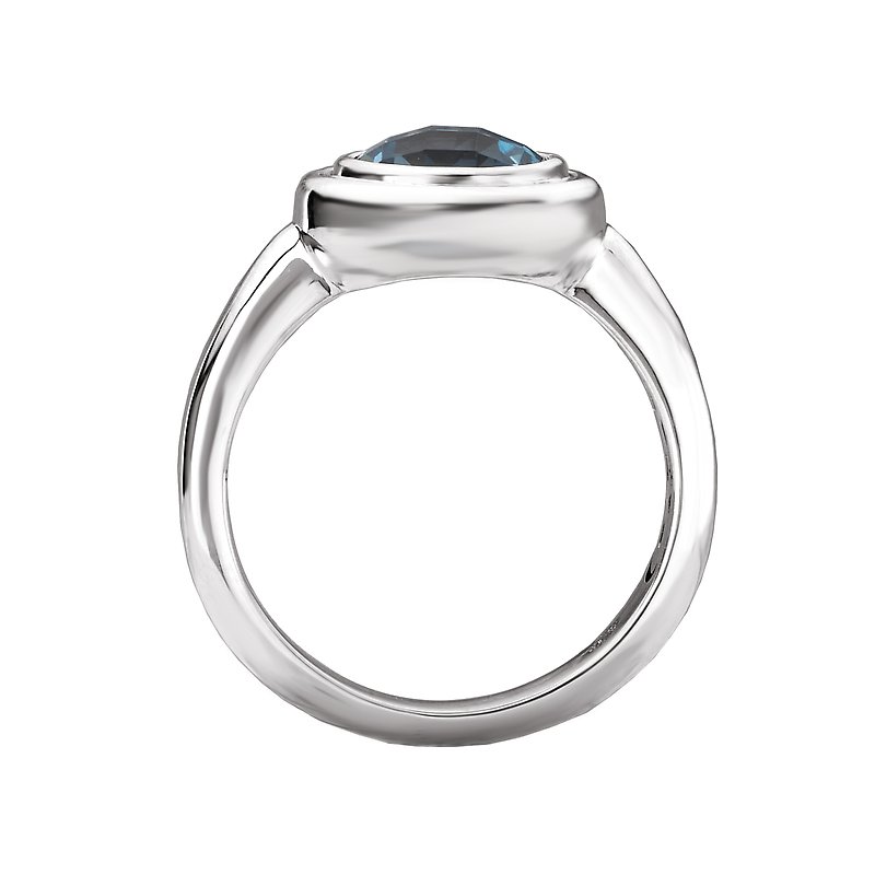 Round sparkling blue topaz gemstone ring is crafted in high polished silver. (BT 8mm)