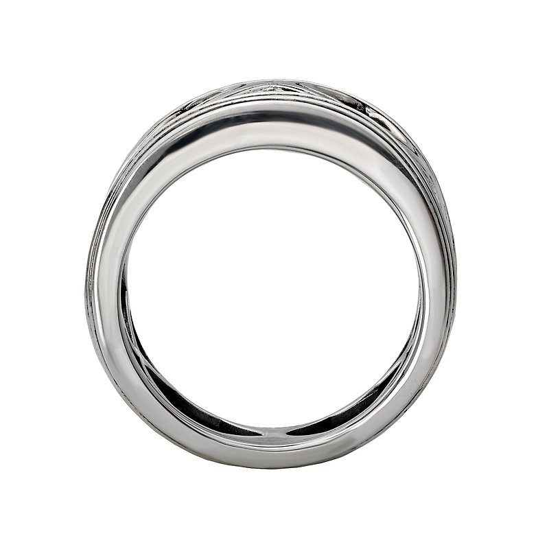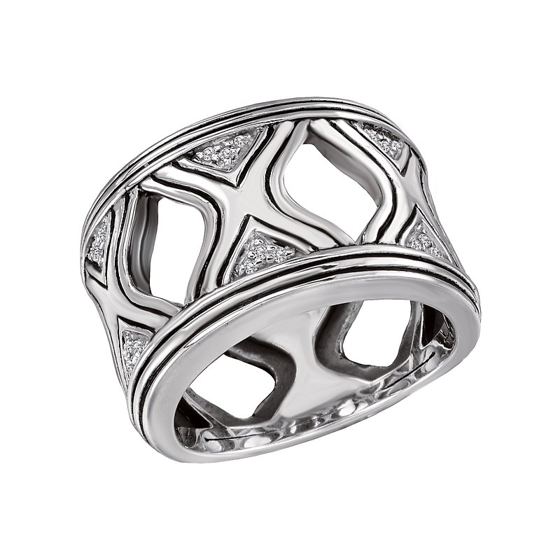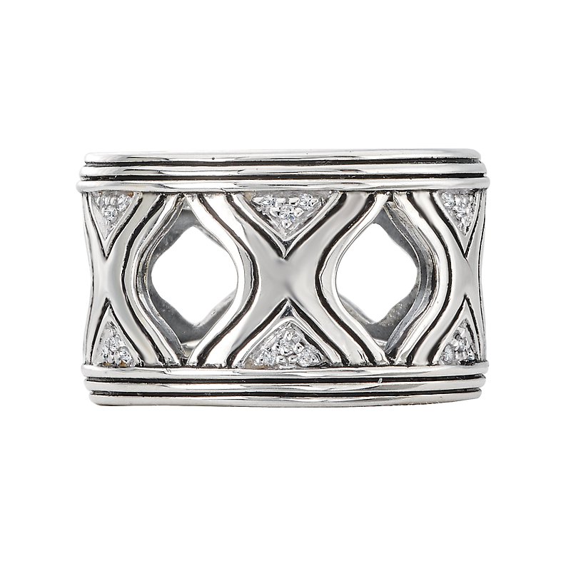 This unique ring is crafted in high polished sterling silver with brilliant sparkling diamonds. (D .08 carat total weight)