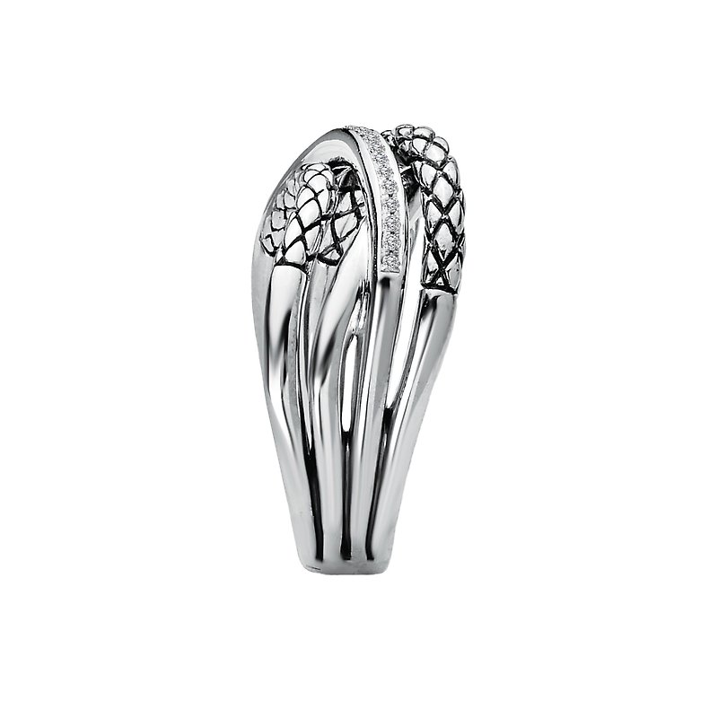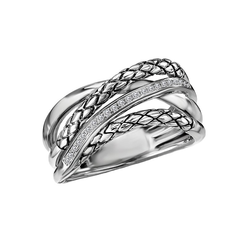 Four row twisted ring crafted from sterling silver with one row adorned with diamonds. (D .08 carat total weight)