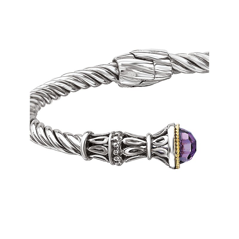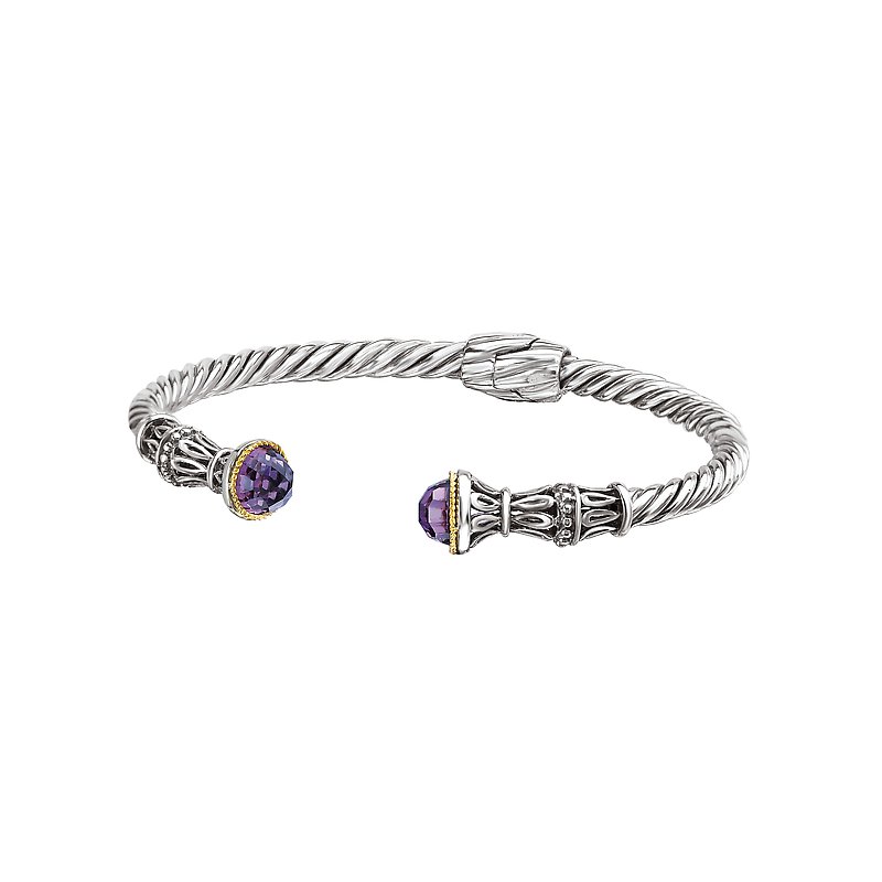 Sterling Silver Cuff with 18kt Yellow Gold Accents and 8mm Amtheyst End Caps (AM 5.30 carat total weight)