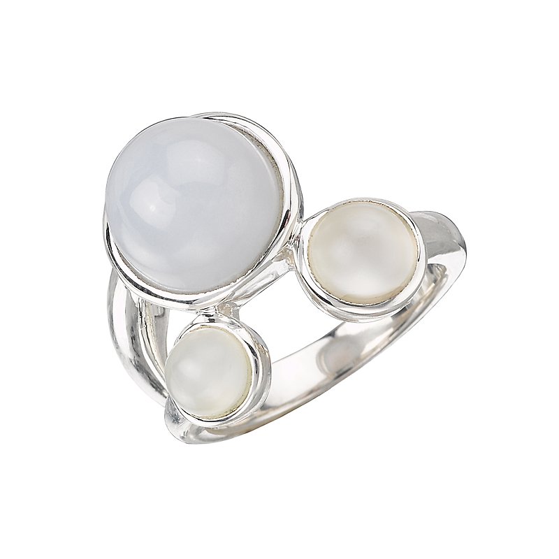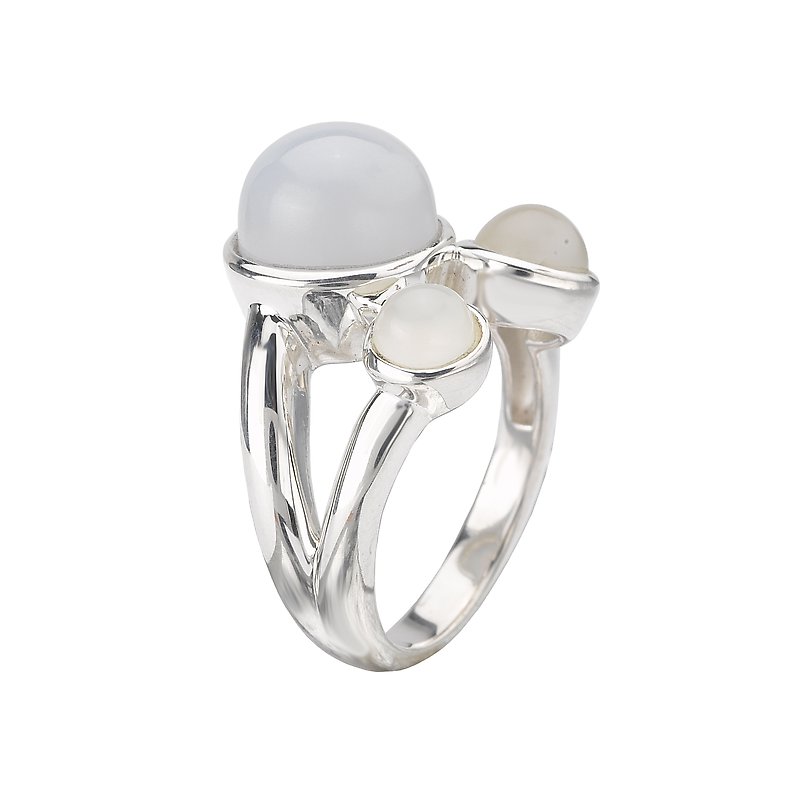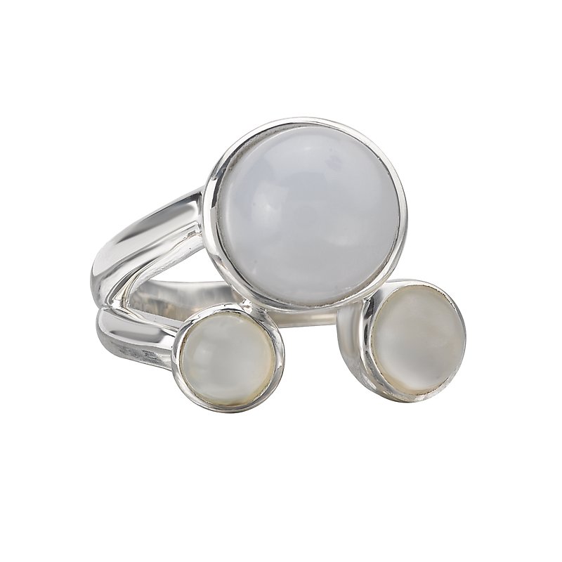 Chalcedony and Moon Stone Ring In Sterling Silver. (High Polish) Sizes Available 6, 7, 8