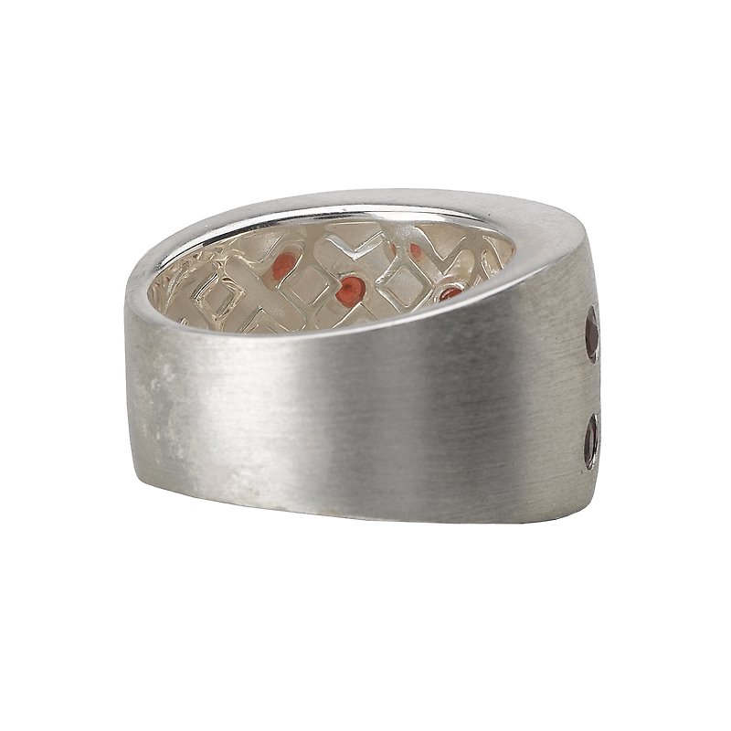 Satin Finish Ring With Round Garnet Stones In Sterling Silver.