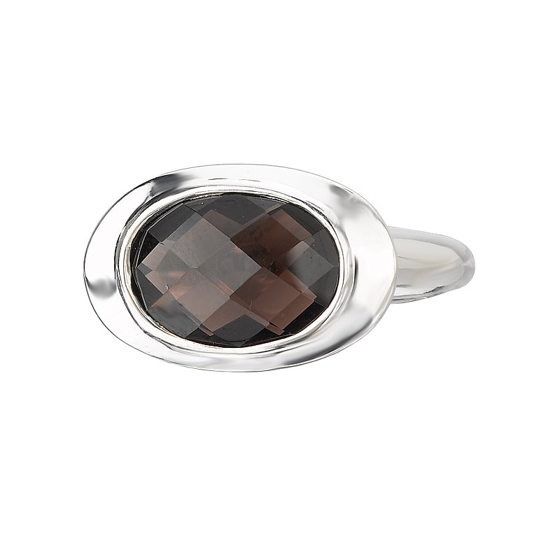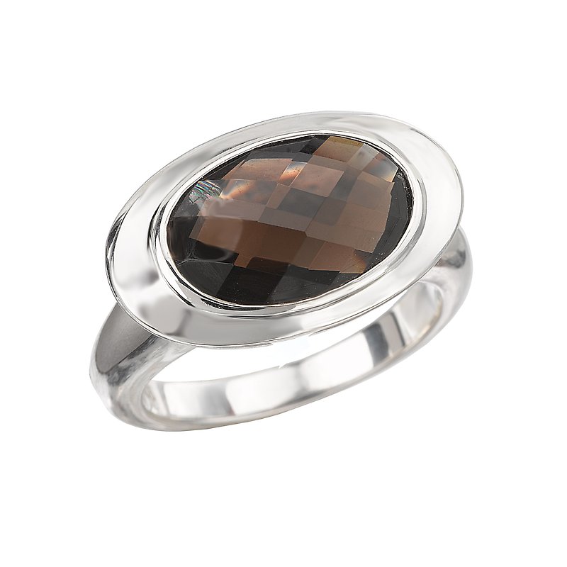 Sterling Silver Ring with a Bezel Set Oval 14x10mm Smoky Quartz Center. (SQ 4.90 total gem weight)