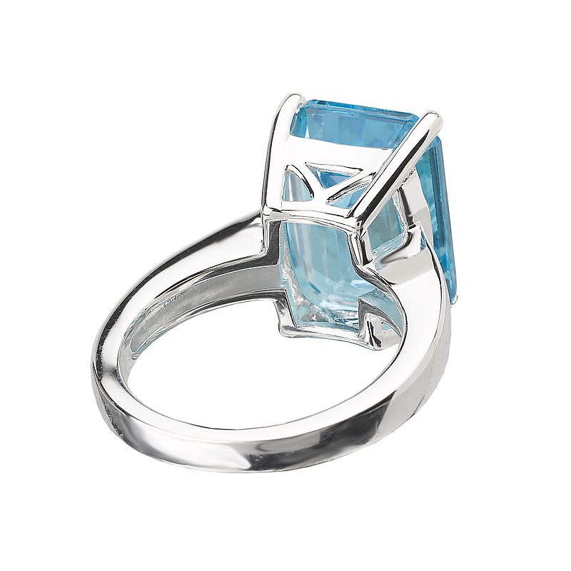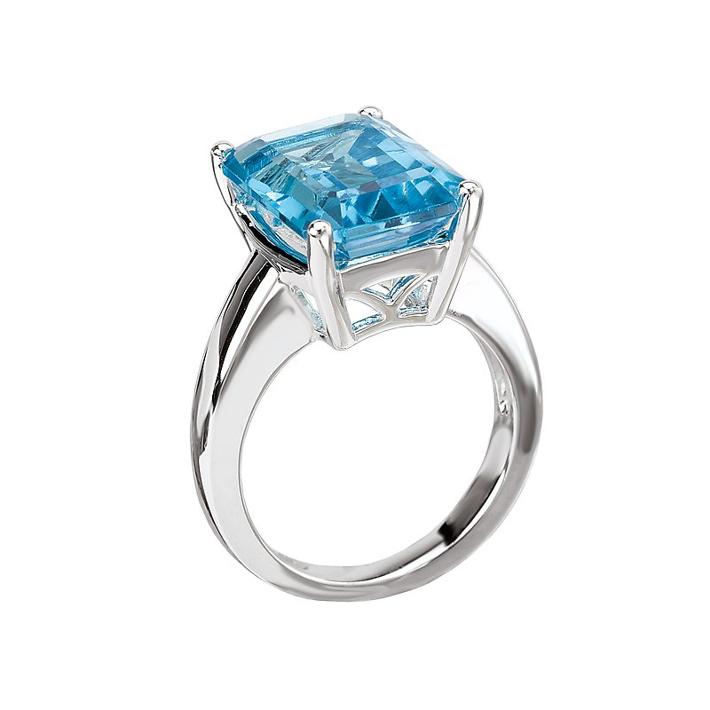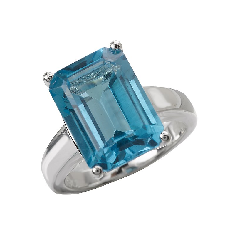 Emerald Cut Swis Blue Topaz Ring In Sterling Silver. Sizes Available 6, 7, 8