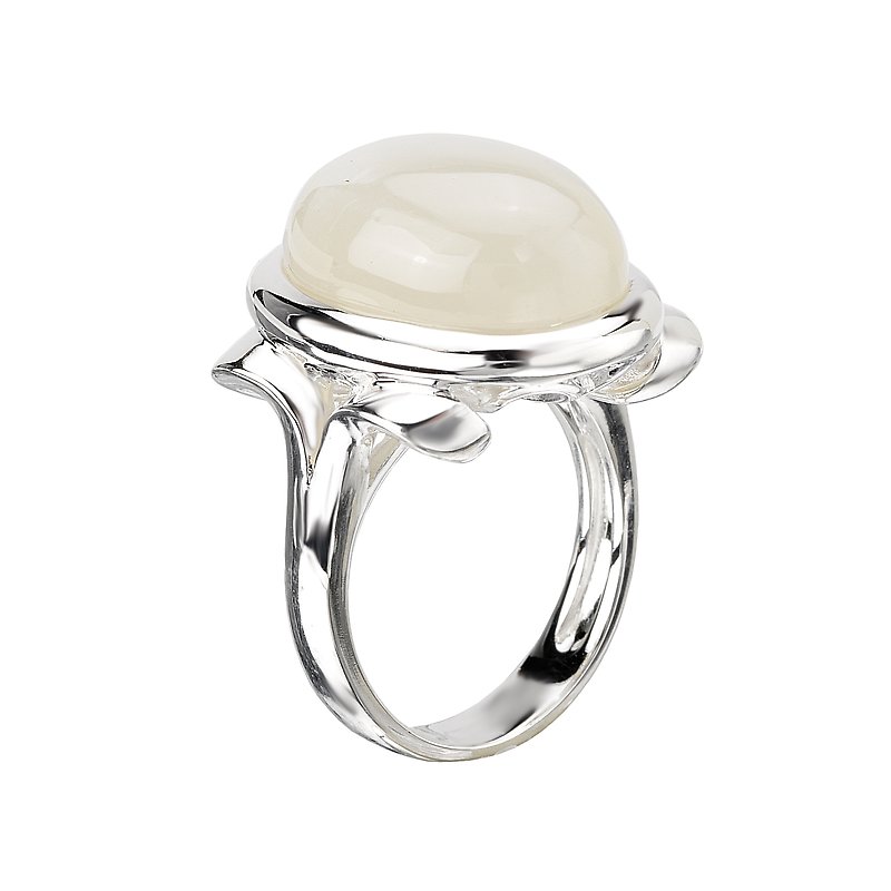 Rhodium Plated Sterling Silver Cabochon White Moonstone Ring. (Mst. 18x13mm)
