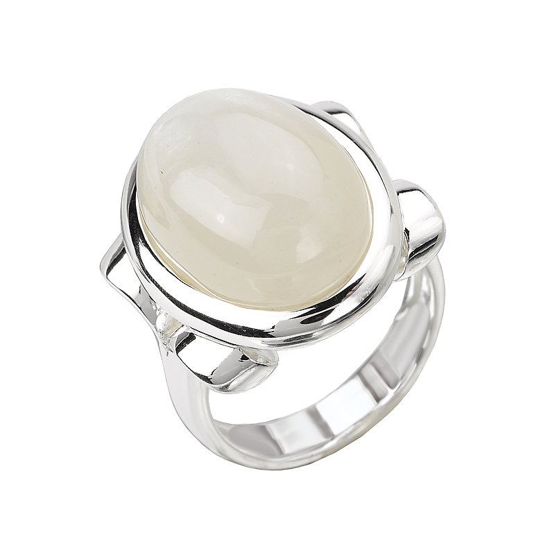 Rhodium Plated Sterling Silver Cabochon White Moonstone Ring. (Mst. 18x13mm)