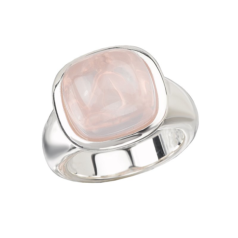 Sterling Silver and 12mm Cabochon Rose Quartz Ring (RQ 7.80 carat total weight)