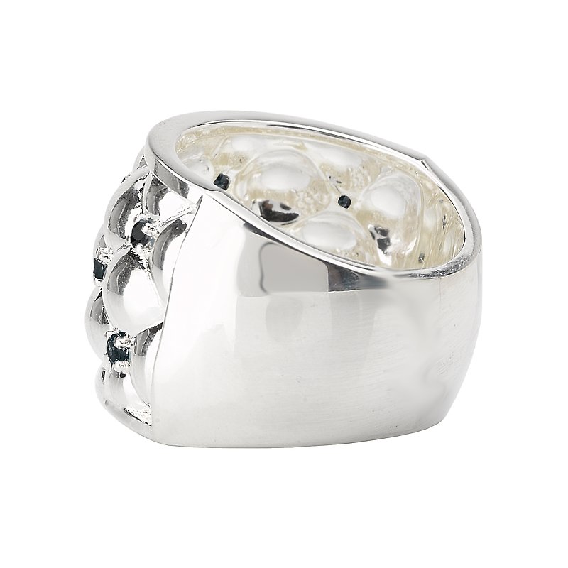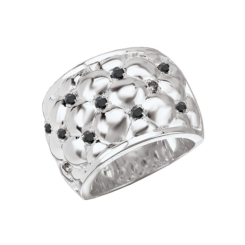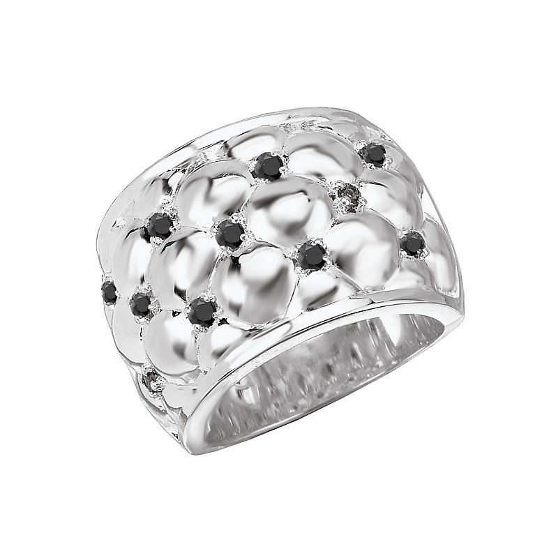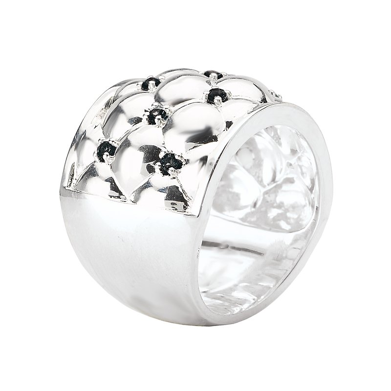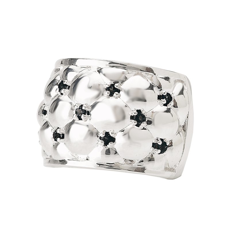 Quilted Look Black Spinel High Polish Ring In Sterling Silver.