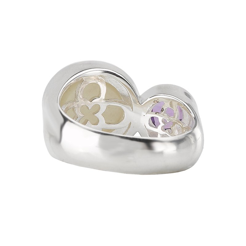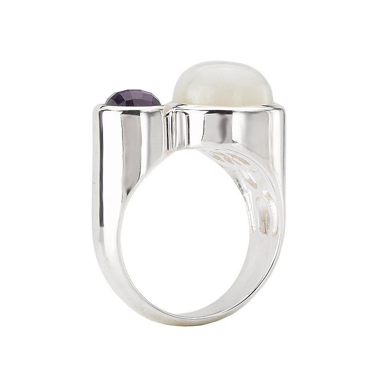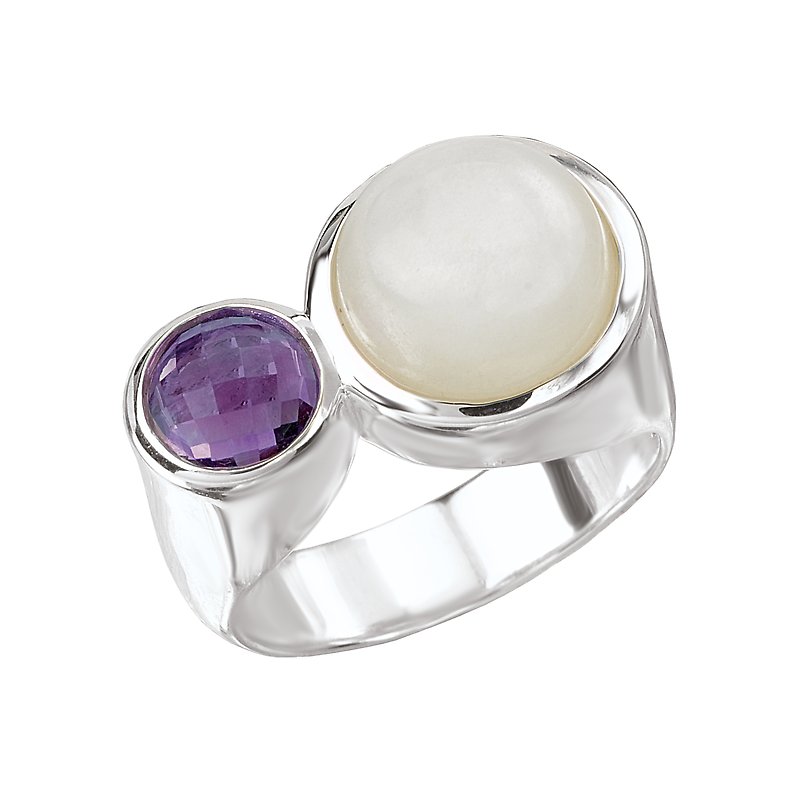 Sterling Silver Ring with a Round Moonstone and Amethyst Center. (WM 4.73 carat weight, AM .79 carat weight) Sizes Available 6, 7, 8