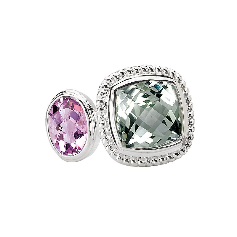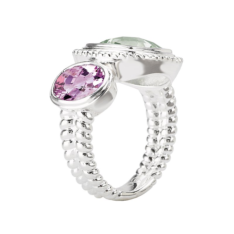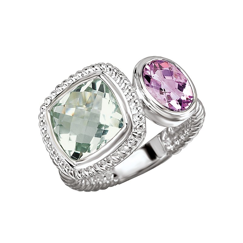Sterling Silver With Rope Design Green and Purple Amethyst Ring. (G-AM 3.90 carat weight; P-AM 1.72 carat weight) Sizes Available 6, 7, 8