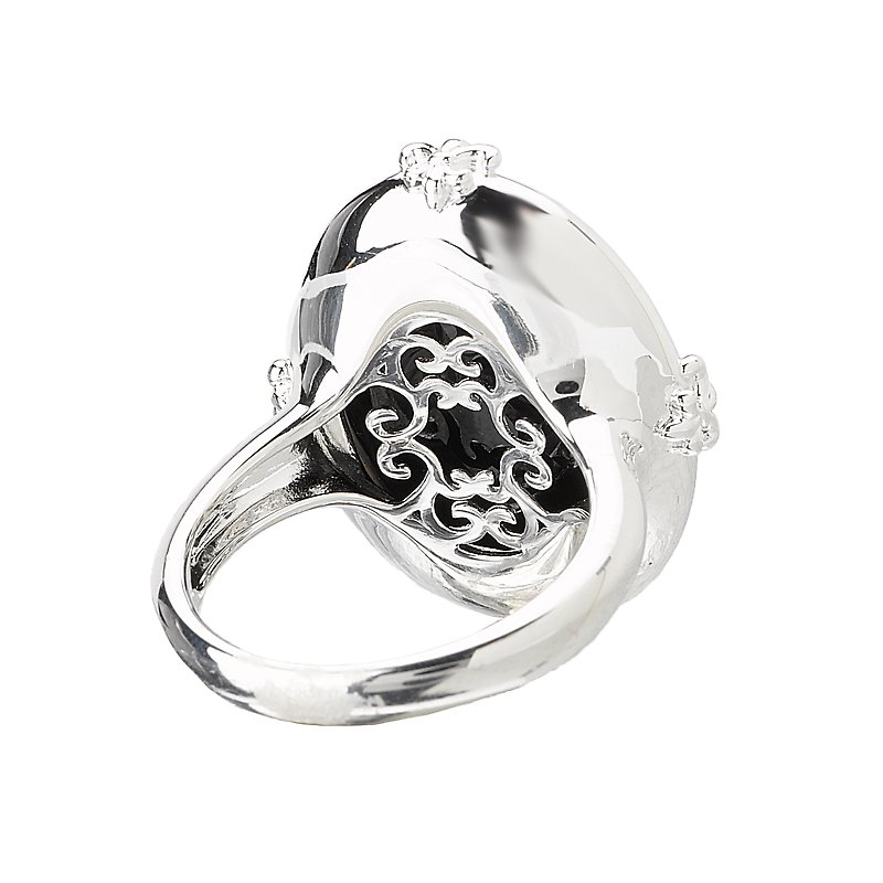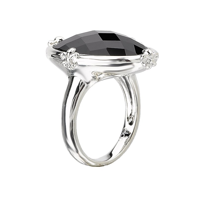 Sterling Silver Ring with Fleur De Lis and Black Onyx. (BO 11.43 carat total weight) Sizes Available 6, 7, 8